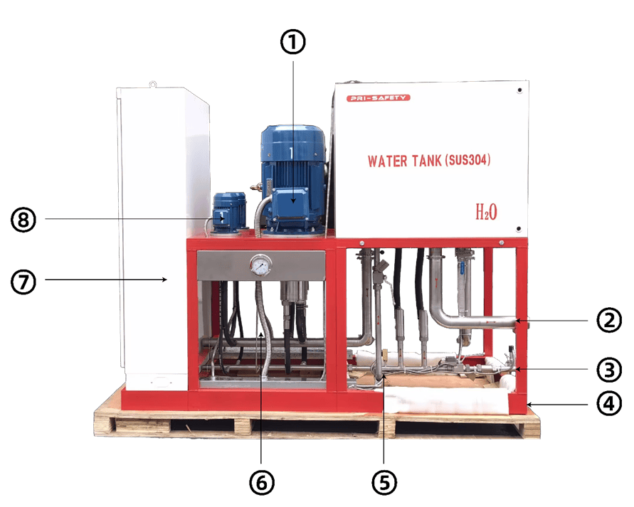 5. Van an toàn 6. Ống đầu ra 7. Tủ điều khiển 8. Bơm bù