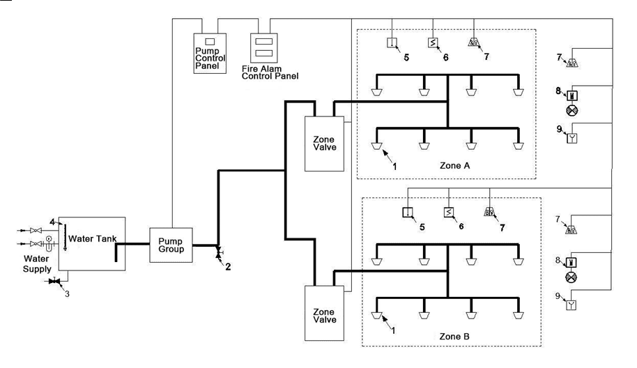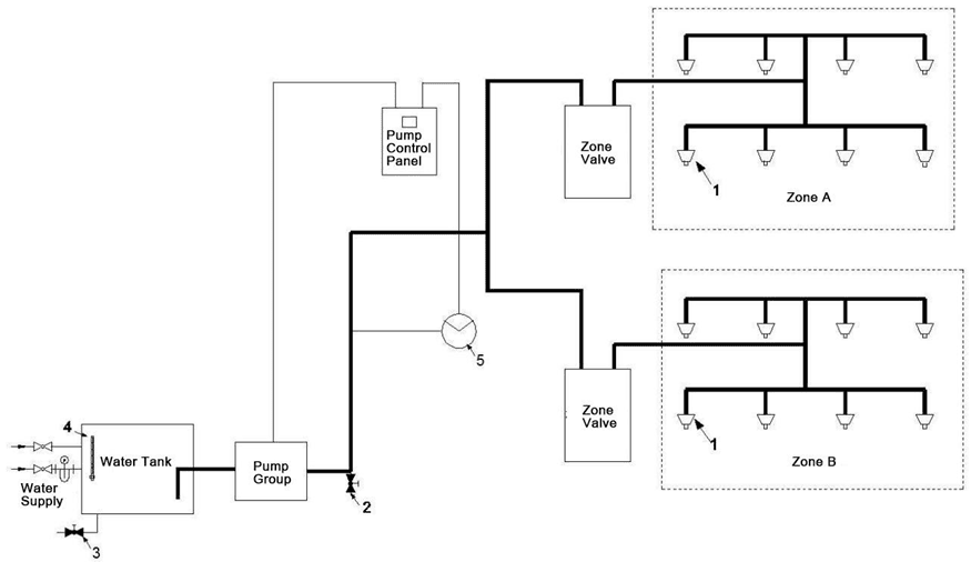 Hệ thống phun sương nước ứng dụng cục bộ: Hệ thống phun sương bảo vệ một khu vực được xác định trước trong phòng.